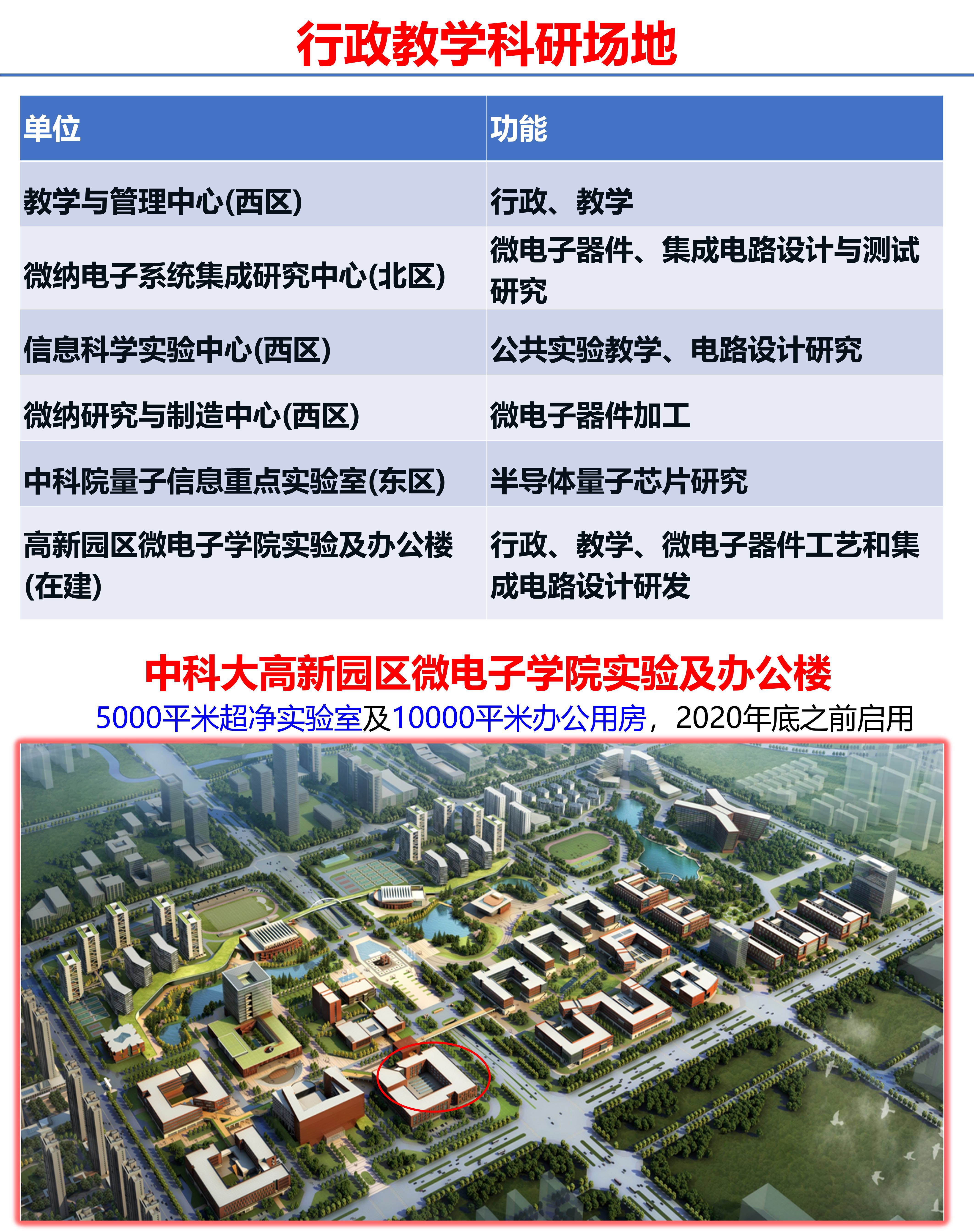 中国科大高新园区微电子学院实验及办公楼 5000平方米超净实验室及10000平方米办公用房,2020年底启用 |
