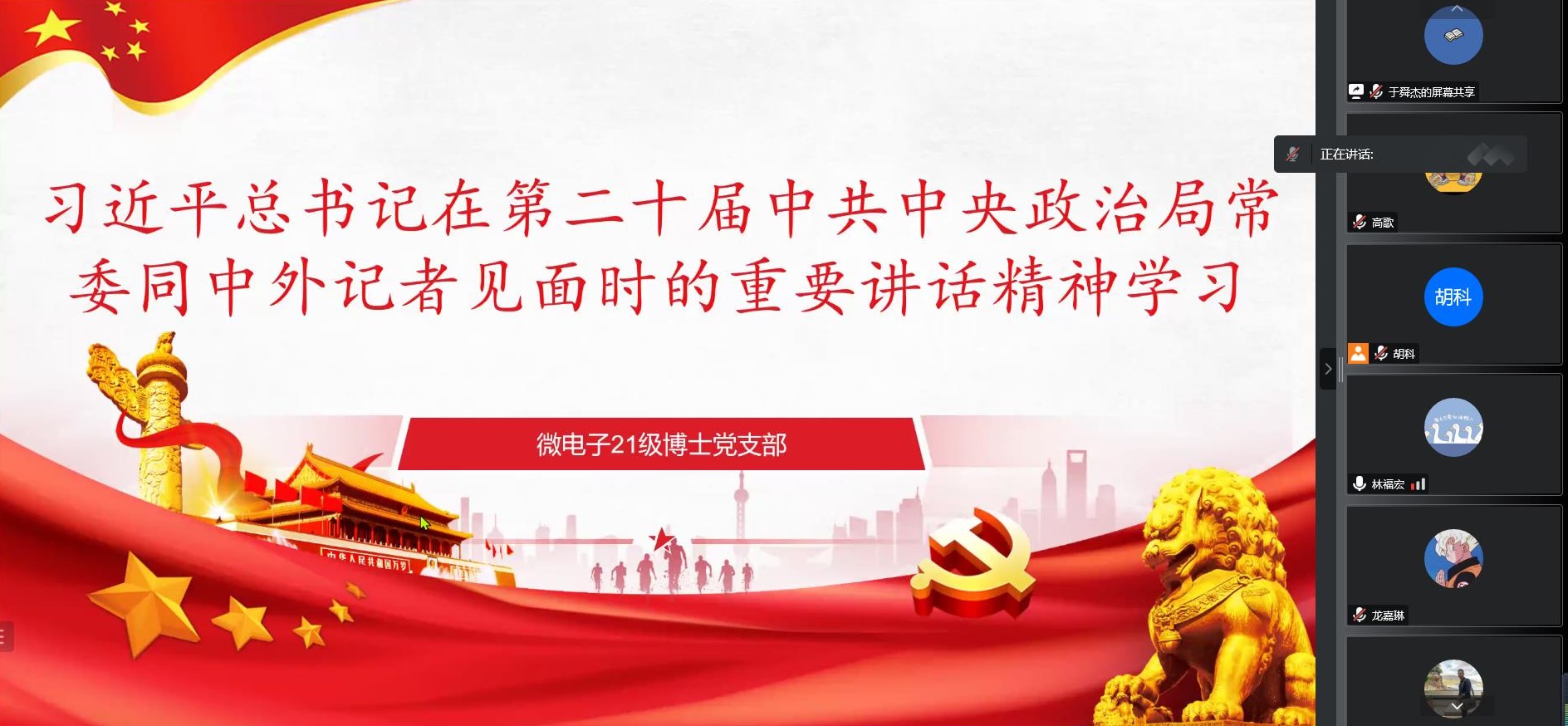 党的二十大召开以来,在班级党支部和团支部的带领下,微电子学院21级博士班第一时间开展了系列学习宣传贯彻党的二十大精神活动并在班级同学中引发热烈反响。