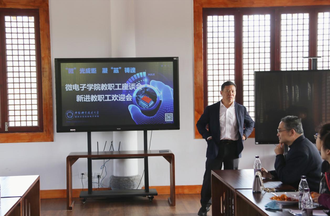 在教职工座谈会上,执行院长龙世兵总结了今年学院在人才引进、科研创新、实验平台以及高新园区建设等方面所取得的成绩,并希望全体教职工继续以饱满的工作热情、良好的精神状态、务实的工作作风,立足岗位、凝心聚力,在新形势新要求下实现新作为,努力建成一流国家示范性微电子学院。随后,学院副院长程林、院长助理张旭、办公室主任蔡伟分别介绍了研究生培养、本科生培养、导师和班主任行为准则、办公场地建设等相关事宜。