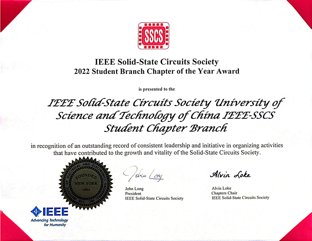 IEEE 固态电路学会 中国科大分会(SSCS-USTC)是由林福江老师2018年所主持创立的。近年来由于主席麦蒙的积极推动,SSCS-USTC开展了系列活动,如邀请国内外知名高校和研究所的学者来科大开展学术讲座,组织开展各项趣味沙龙活动,在SSCS的协会杂志撰文报道、积极宣传纳新等等,为推动集成电路领域国内外交流合作、培养集成电路人才作出积极贡献。