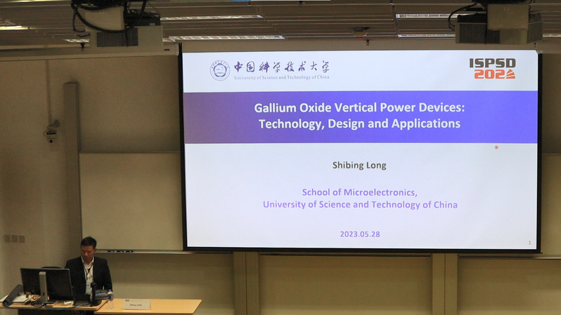 近日,中国科大微电子学院两篇论文入选第35届功率半导体器件和集成电路国际会议(IEEE ISPSD,全称:IEEE International Symposium on Power Semiconductor Devices and ICs)。IEEE ISPSD是功率半导体器件和集成电路领域在国际上重要的知名学术会议,ISPSD 2023于今年5月28日至6月1日在中国香港举办。会上,龙世兵教授受邀作了题为“Gallium Oxide Vertical Power Devices: Technology, Design and Applications”的大会Short course报告,向国际同行介绍了氧化镓(β-Ga2O3)作为超宽禁带半导体材料在肖特基势垒二极管(SBD)、异质PN结二极管(PND)、场效应晶体管(FET)和功率IC等电力电子器件中的重要应用,系统介绍了Ga2O3基功率器件的发展,包括β-Ga2O3单晶衬底和外延膜生长,SBD、PND和MOSFET功率器件的仿真、设计和研制,以及β-Ga2O3功率模块的设计研制,现场反响热烈。