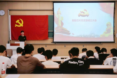 9月16日下午,微电子学院智能芯片党支部成立大会在高新校区GT-B110教室顺利召开。大会选举出第一届支部委员会委员,开展“以学铸魂,以学增智,以学正风,以学促干”主题党日学习活动,集体观看了中国科大微电子学院宣传视频,会后全体党支部成员参观了“中国科大与‘两弹一星’纪念展”和“科学家精神主题展”。智能芯片党支部全体党员参加此次大会,会议由智能芯片党支部党员大会筹备工作领导小组成员胡科主持。