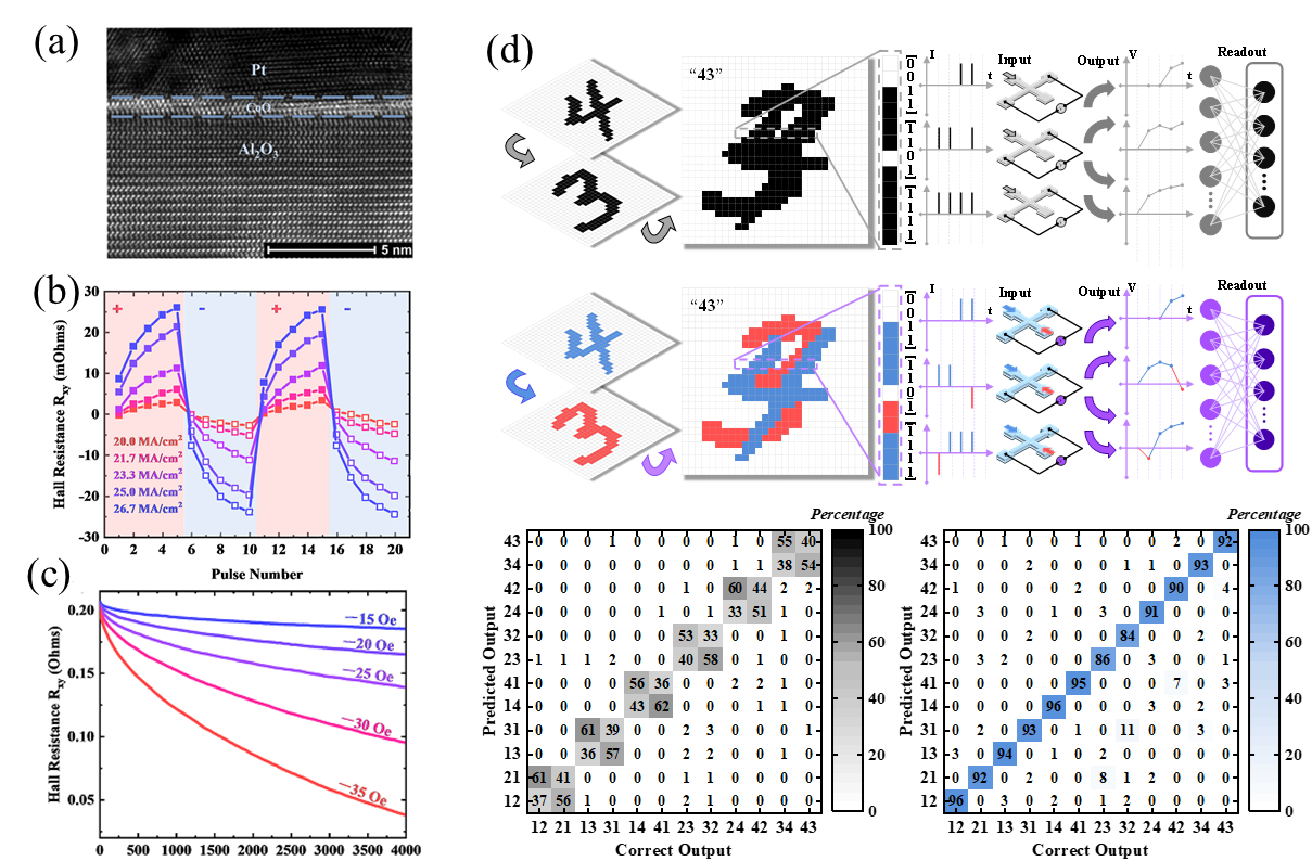 该工作首次基于纯反铁磁体系实现了自旋神经形态器件,并为进一步利用反铁磁材料的优势,开发超高集成度和超高运算速度的类脑计算系统奠定了基础。