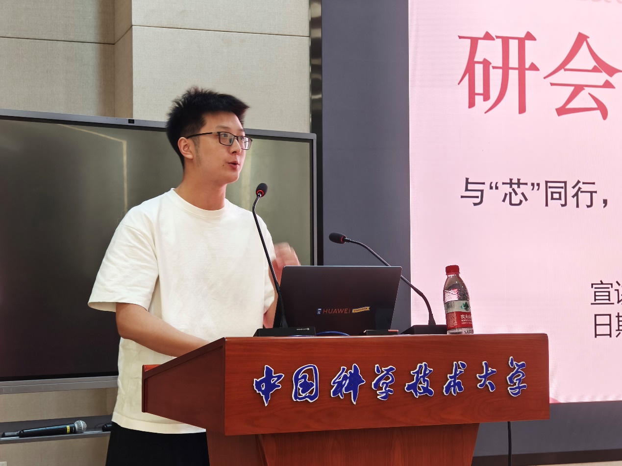 9月18日,在微电子学院研究生新生入学教育大会上,研究生会主席佘洋帆面向2025级新生进行了招新宣讲。他全面介绍了研会的组织架构、品牌活动及报名流程,生动展现了研会的职能与特色,激发了同学们的浓厚兴趣与参与热情。