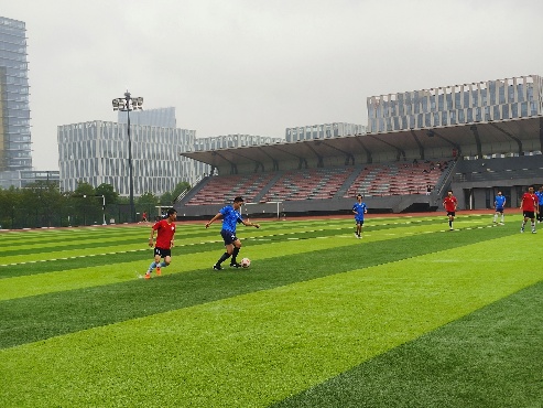 绿茵逐影秋云动,青春激扬战意酣。10月18日下午,微电子学院在高新校区足球场成功举办2025年本科生足球赛。尽管秋雨濛濛、寒意渐浓,但参赛学子的热情未减,23名球员在绿茵场上展开了一场跨越年级的精彩对决。由大一、大二学生组成的红队朝气蓬勃,而大三、大四学长组成的蓝队则经验丰富。雨水与汗水交织,冷风与激情碰撞,一场扣人心弦的足球盛宴就此拉开帷幕。