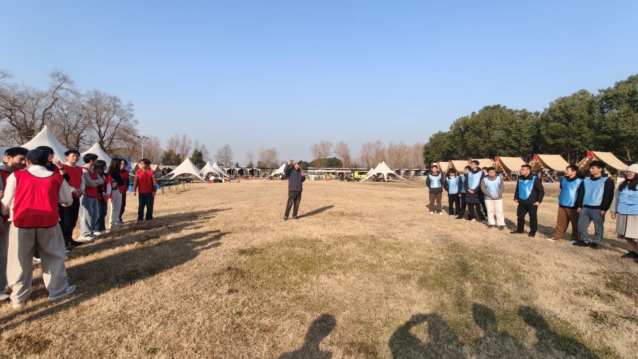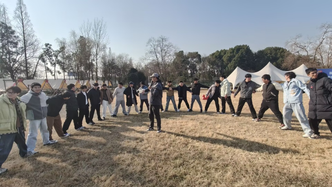 午后时分,同学们抵达露营基地,金色的阳光温柔地洒落在青青草地上。在欢声笑语中,“风吹草动”等趣味破冰游戏如火如荼地展开。同学们在轻松愉快的互动中,不知不觉拉近了彼此的距离,欢快的气氛如同春日的暖阳,温暖着每个人的心田。