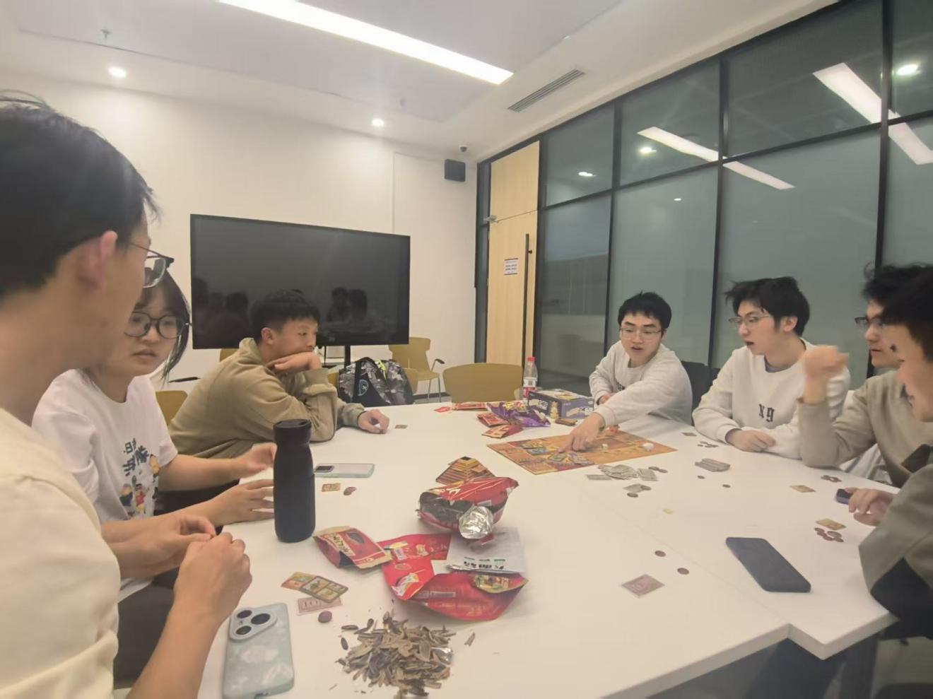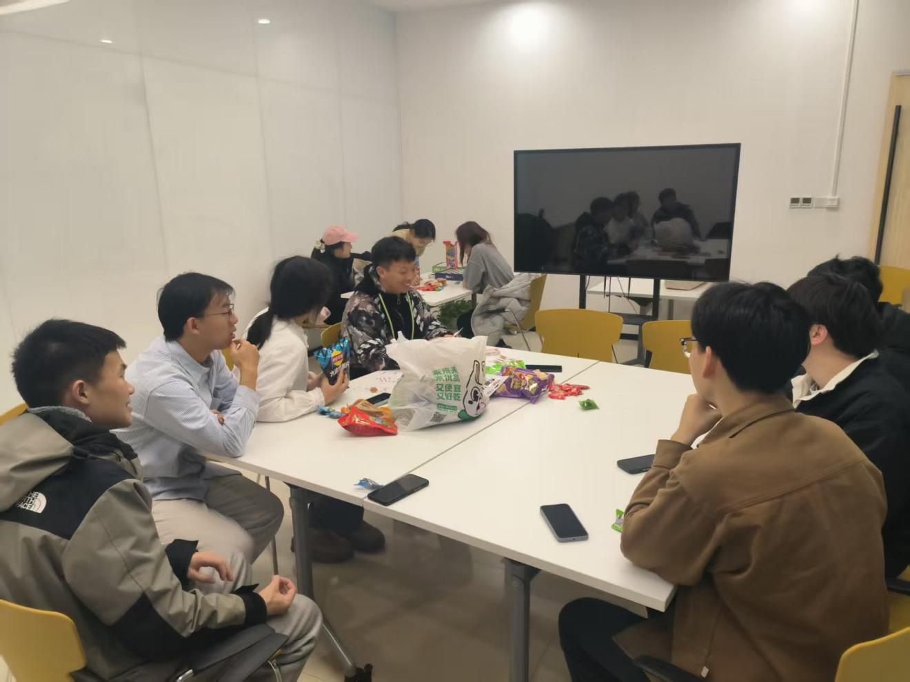 晚上,集体交流活动在高新图书馆研讨室举行。班委们精心准备了桌游、零食和饮料,为活动营造了轻松愉快的氛围。同学们围坐一堂,围绕学业、科研与就业展开茶话会。大家畅所欲言,分享学习心得,交流科研经验,畅谈未来规划,在真诚的对话中增进了彼此的了解和信任。