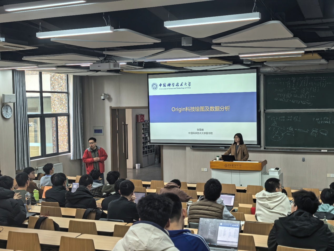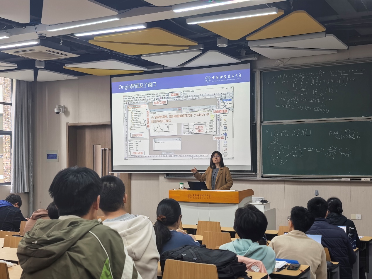 在数据分析环节,张老师重点解析了origin在数据拟合、统计分析与曲线拟合等方面的功能,通过现场实例操作,引导同学们掌握从数据中提取关键信息、支撑科研结论的方法。讲座过程中,同学们全神贯注、积极互动,现场洋溢着浓厚的学习氛围。