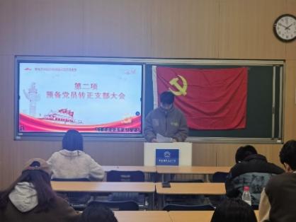 随后,会议讨论了朱贵旭、汪友胜2位同志预备党员转正事宜。本次支部大会应到正式党员20人,实到正式党员19人,有表决权的到会人数超过应到会有表决权人数的半数,大会符合要求并正式召开。王诗琪首先介绍了转正流程以及拟转正的预备党员同志基本情况。其次,2位预备党员分别汇报自身相关情况,与会的党员酝酿讨论并发表意见。预备党员表态发言,与会正式党员进行无记名投票表决,监票人、计票人清点表决票,由王诗琪同志宣布投票结果,并宣读支部大会决议。最终经支部大会无记名投票表决,对两位同志预备党员转正的赞成人数超过应到会有表决权的正式党员的半数,同意接受其为中共正式党员。