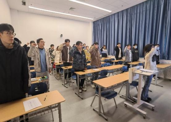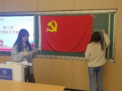 最后,党支部全体成员在王诗琪同志的带领下高举右手宣读入党誓词,铿锵恢宏的誓词,强烈震撼着在场的每一位党员,一字一句,体现了党员同志们对中国共产党的无限忠诚。大家表示:“有幸遇到了这个中华民族的伟大复兴最好的时刻,作为我党的新鲜血液,作为新时代的青年党员,我们要以足够热情投身社会主义建设中去,我们将是社会主义建设的中坚力量。因此,我们必须努力,用实际行动告诉我们的党和国家,我们有能力做中国特色社会主义的接班人!”