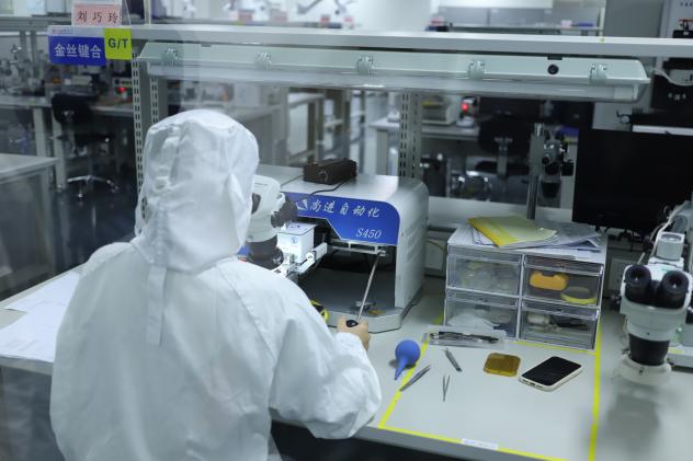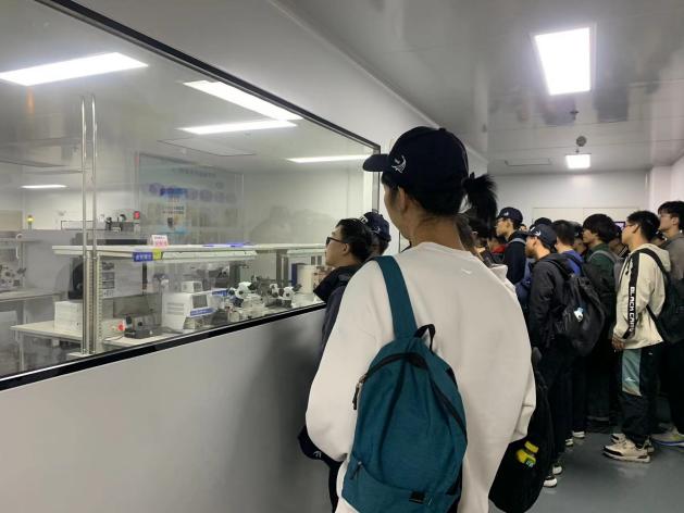 公司生产总监尚成伟首先带领大家参观展厅。从微小晶圆到裸芯片,从封装芯片到导弹、火箭模型等,尚总监为同学们详细讲解了这些产品背后的科学原理以及应用场景,课本中抽象的知识在同学们眼前化为一个个可触可感可用的工业产品。“如果将芯片从研发到投入使用的过程比作造房子,那么我们公司的任务就是造砖与砌墙”,在尚总监深入浅出地讲解下,同学们知晓了公司自主研发的各类射频和微波芯片的功能和基本构造。在陆续参观了研发部、质量部等部门工作的实验区域后,同学们初步了解了从晶圆到封测再到模组的整个芯片生产流程,对自己的所学的专业知识有了更深刻的认识和了解。