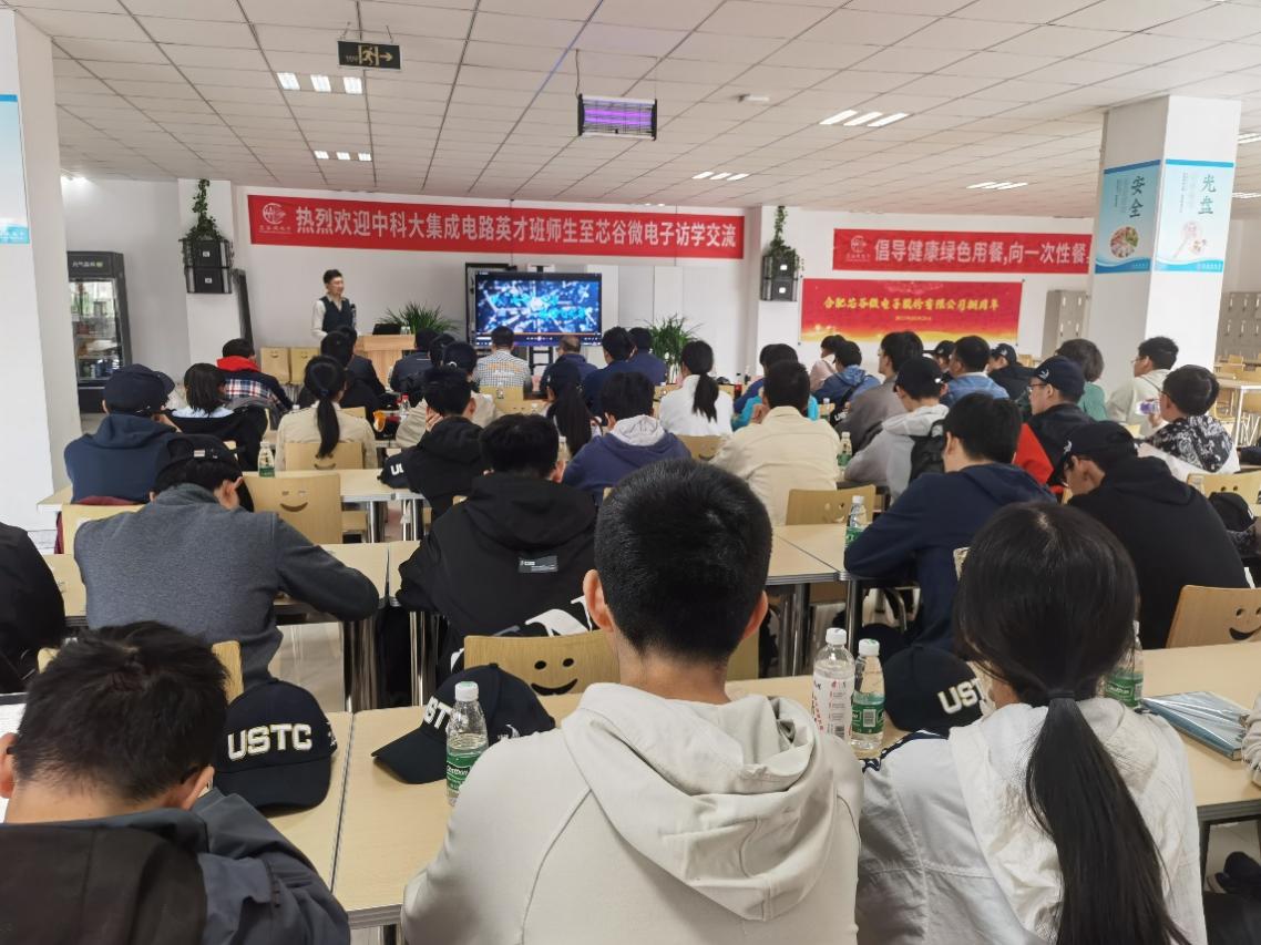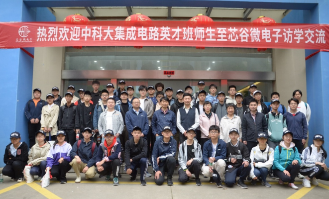 为深入学习贯彻党的二十大精神,进一步深化产教融合、校企合作,不断提高人才培养质量,微电子学院中微集成电路科技英才班21级、22级共五十余名本科生于4月22日赴中国科大校友企业合肥芯谷微电子股份有限公司进行访学交流。微电子学院院长助理张旭、学院本科生教学秘书刘双红及22级本科生班主任潘思园与同学们一同前往。