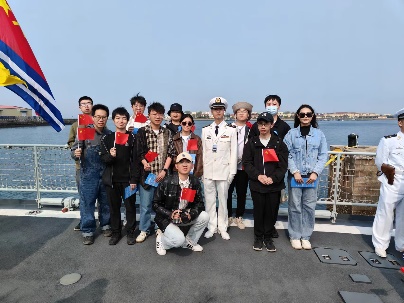 4月21日上午,同学们一行人来到青岛港3号码头,参加了2024年海军成立纪念日舰艇开放活动。本次开放舰船共有4艘,分别是导弹驱逐舰贵阳舰、石家庄舰,综合补给舰可可西里湖舰和综合援潜救生船洪泽湖船,其中多数船只参加过亚丁湾护航、出国访问、联演联训等重大任务。预约前来参观的市民游客络绎不绝,同学们爬舷梯、进舱室、登甲板,一路走、一路看、一路问,感受着人民海军的强大。“能登上军舰为海军庆生,太激动了!”手拿国旗的任浩然同学兴奋之情溢于言表。在登舰参观之余,同学们还与海军官兵面对面交流、参加军事特色科目体验,零距离感受到了人民海军舰艇的风采和魅力。