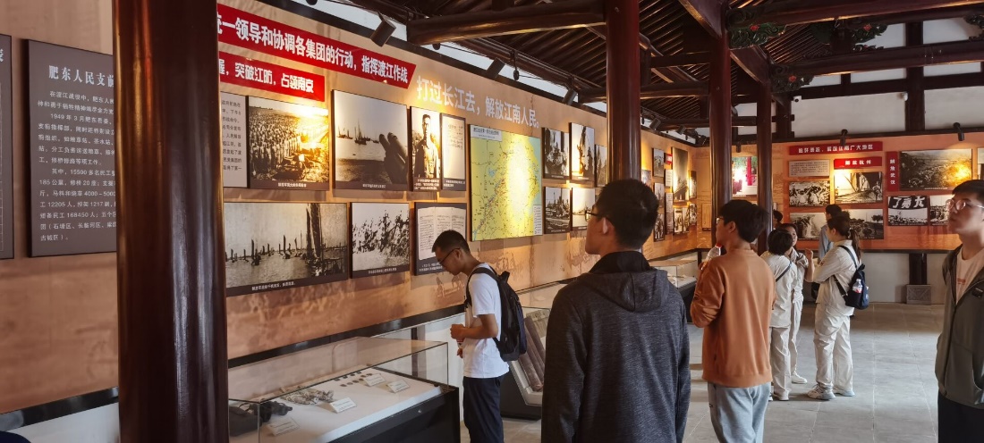 渡江战役总前委旧址位于安徽省合肥市瑶岗村,包括总前委旧址、中共中央华东局旧址、总前委参谋处旧址、总前委机要处旧址、总前委秘书处旧址等遗址。在参谋处旧址,支部成员们详细了解了渡江战役从准备阶段到获胜的整个过程,深刻认识到总前委的重要作用,切身体会到战役中我军英勇无畏的革命精神。在《渡江情》书画展厅,支部成员们欣赏了众多革命将领的书画作品,一幅幅作品传达出人们对战争胜利的喜悦,生动揭示了渡江战役的重大意义。正如馆内聂荣臻元帅所写下的“伟大的渡江战役的胜利加速了全中国的解放,是值得永远纪念的!”,渡江战役的伟大胜利,宣告着一个新的时代的来临。
