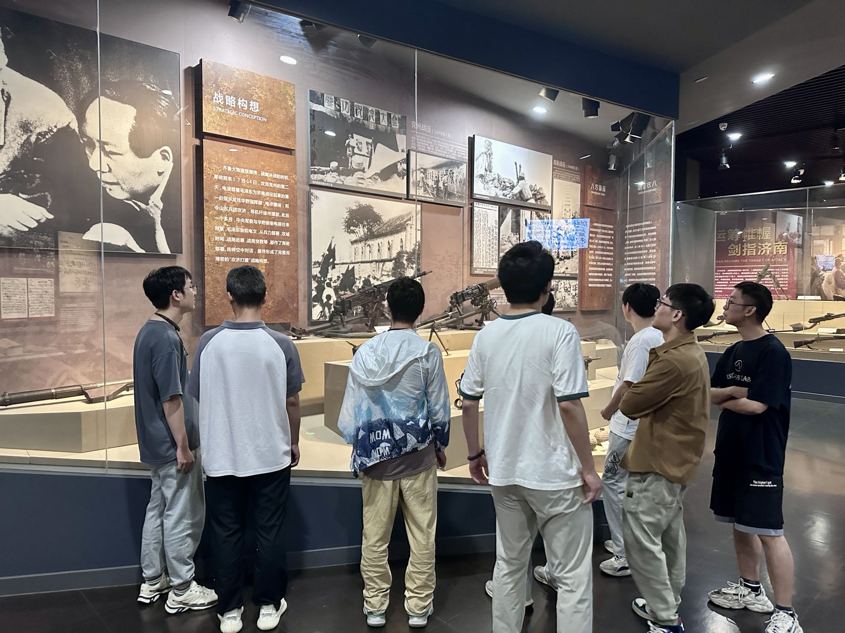 在济南战役纪念馆和解放阁,同学们参观了济南战役中使用的枪械武器、生活工具、历史照片和文献材料等各类展览以及济南战役英雄群像,深入了解了济南战役的重要历史事件。馆内丰富的历史资料和生动的战役场景再现,让同学们仿佛置身于当年血与火的硝烟战场,见证了革命先烈为新中国成立浴血奋战、视死如归、奋勇杀敌的壮烈场景,激发了强烈的爱党爱国热情和历史责任感、使命感、荣誉感。