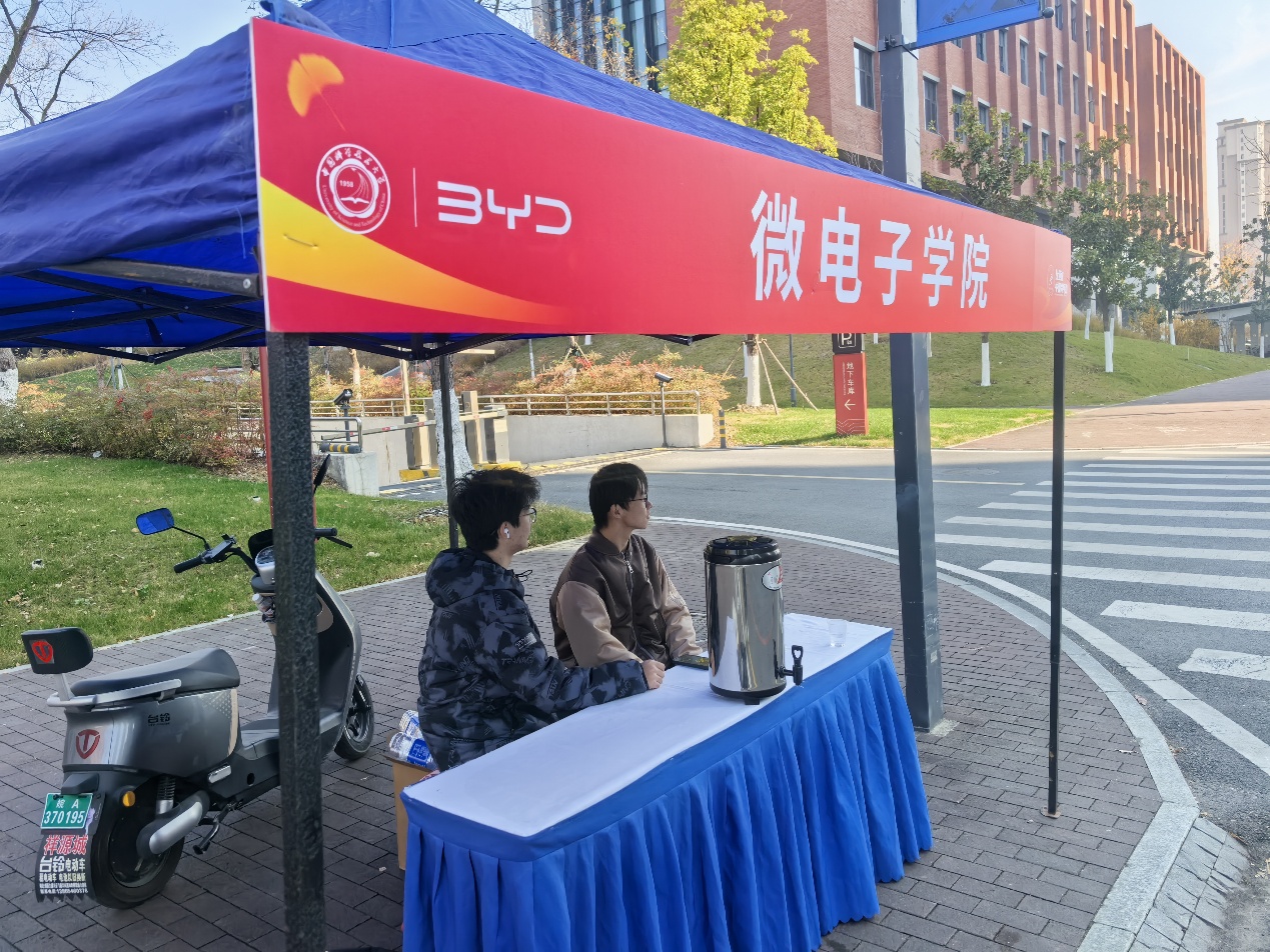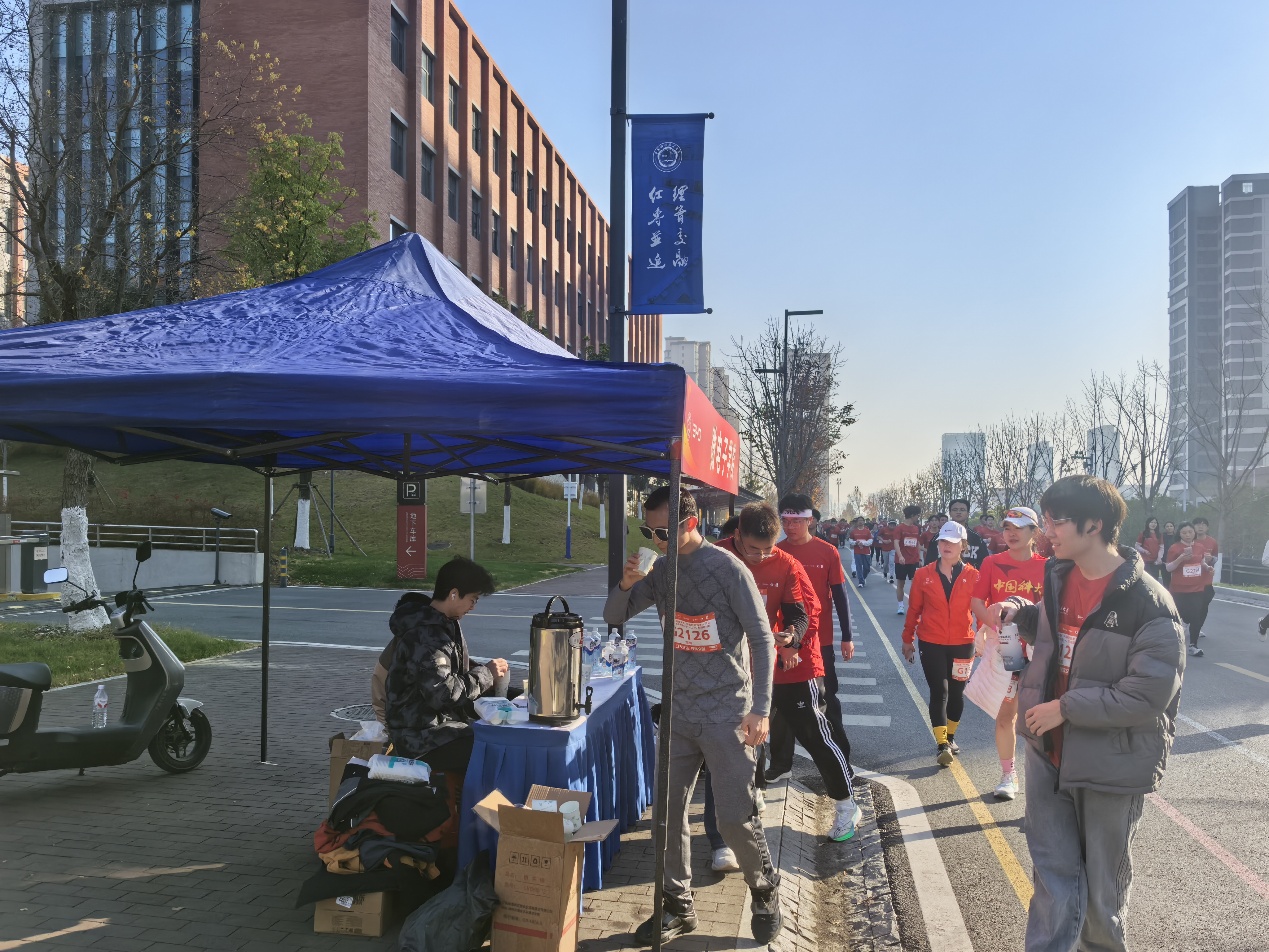 为保障赛事顺利进行,微电子学院在西校区和高新校区赛道沿线分别设置了服务站点。志愿者们提前布置场地,备足士力架、温开水、运动饮料等补给物资,并全程提供热情周到的服务与引导,成为选手们坚实的后盾。此外,学院师生严格遵守赛事纪律,积极配合医疗跑者、定点医护及急救车辆等安全保障措施,彰显了高度的集体荣誉感与责任感。