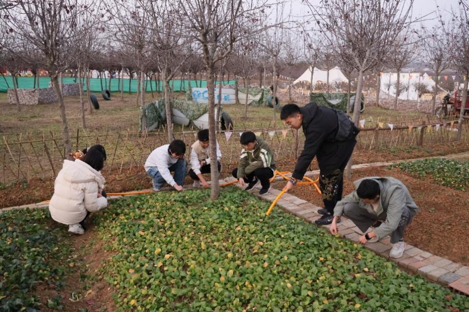 在自由活动结束后,同学们共同参与了一项特别的劳动实践——田园采摘。大家走进营地旁的菜地,在工作人员的指导下,亲手采摘新鲜蔬菜。弯腰劳作间,同学们不仅体验了收获的喜悦,更深刻体会到“一粥一饭,当思来之不易”的朴素道理,在泥土的芬芳中上了一堂生动的劳动教育课。亲手采摘的蔬菜,也为傍晚的烧烤食材增添了来自土地的鲜甜。