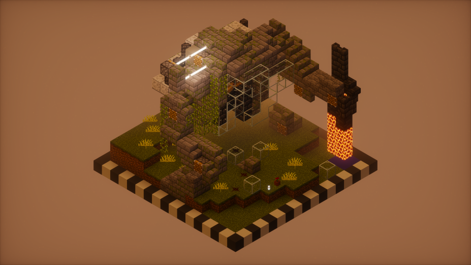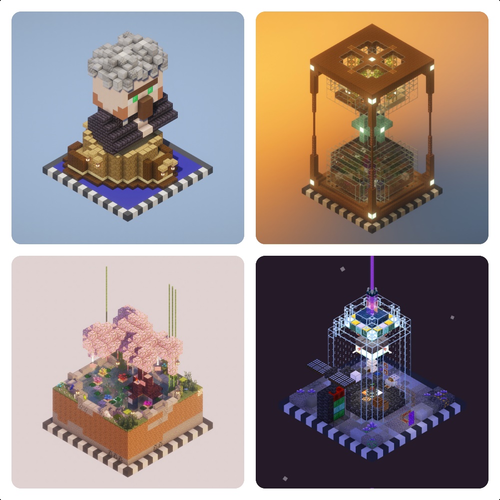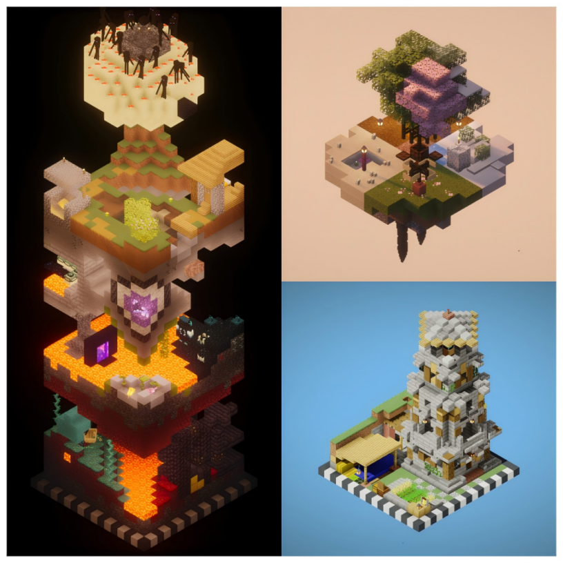 在众多优秀投稿中,部分作品尤为引人注目。《旧世界》巧妙融合熔岩、水晶、森林、祭坛等多重元素,于方寸之间铺陈出一个充满叙事张力的奇幻景观;《四时交响》以一株盆栽为舞台,通过色彩与块面的流转,诗意的勾勒出四季的轮回变迁;《崖岸寸光》借助砖石塔楼与田园细节,渲染出宁静深远的氛围,构图与主题和谐统一;《战后》则运用深色调方块与强烈的明暗对比,刻画战争遗迹的苍凉与孤寂,体现出作者对光影与材质关系的高度掌控。