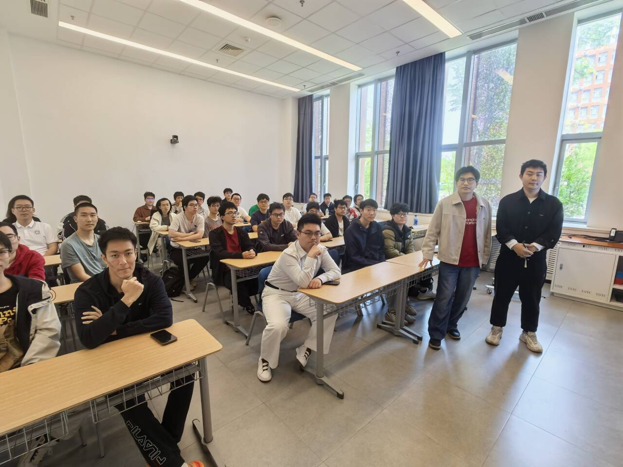 随后,陈杨致远同学围绕考研备考相关事宜展开分享。他结合自身备考经历,坦诚讲述了如何走出备考初期的短暂迷茫、及时调整心理状态并全身心投入复习的过程,为正处于备考阶段的同学们提供了宝贵的心态调节经验。他系统分享了考研复习的时间规划方案与科学复习策略,明确指出集成电路专业考研的专业课核心集中于模拟电子技术与数字电子技术两门课程,并鼓励学弟学妹树立备考信心:“对科大学子来说,考研试题难度可控,不必过度焦虑”。互动环节中,同学们积极提问,陈杨致远就围绕考研日程细化安排、专业课复习重点、备考资料选择等问题进行了细致解答。